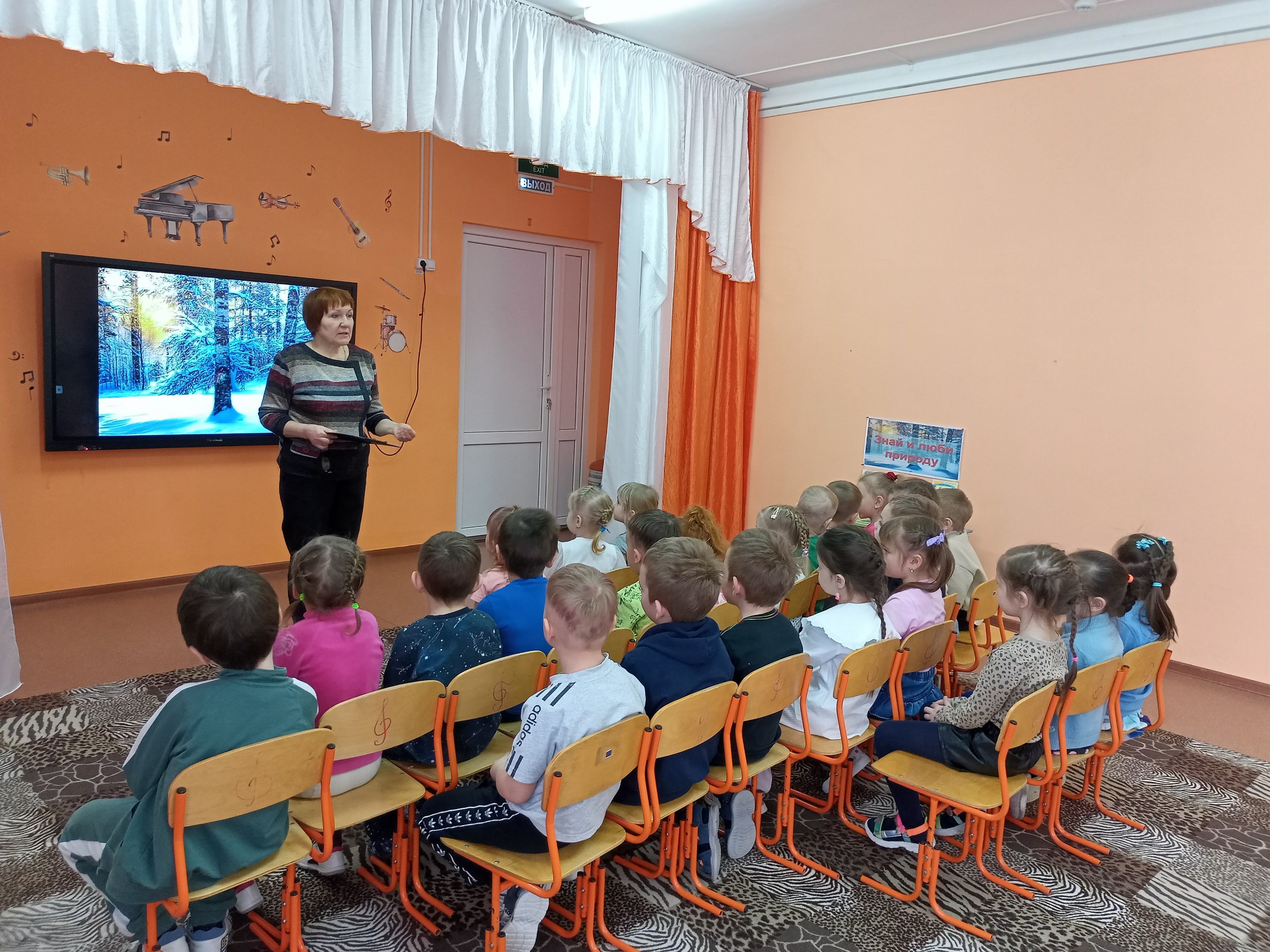 Затем все вместе посмотрели и обсудили мультфильм по рассказу Сладкова «Мальчик и лягушонок», познакомились с книжной выставкой «Знай и люби природу».