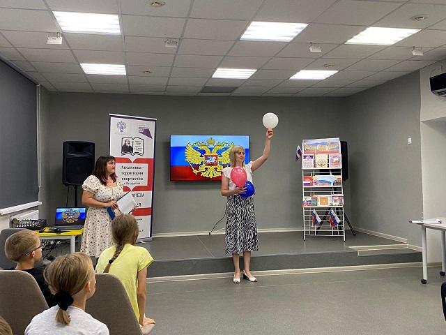 В этот день в ЦГДБ имени С.Т. Аксакова для воспитанников СРЦН «Аистёнок» прошла эрудит-игра «Овеянный славой Российский флаг». В ходе игры ребята вспомнили историю флага с древнейших времён и до наших дней, узнали о том, что символизирует каждый цвет на флаге. Также юные читатели поиграли в игры «Передай флаг», «Собери триколор», «Русские пословицы», отгадывали загадки, прослушали гимн страны.