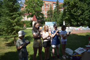 В рамках акции «Лето в парке» ЦГДБ имени С.Т. Аксакова пригласила своих читателей, воспитанников СРЦН «Аистенок», на литературный праздник «Солнечная акварель детства» в городской сквер. Праздничная программа, в компании профессора Макгонагалл из школы чародейства и волшебства, была насыщенной и увлекательной. Весёлые литературные конкурсы «Лабиринт загадок» и «Долина сказок» сменялись подвижными играми «Колобок» и «Красная шапочка», «Незнайка на воздушном шаре». Также гости праздника освоили необычный вид транспорта - ребята «полетали» на ядре барона Мюнхгаузена. Встреча подарила юным участникам массу впечатлений, заряд положительных эмоций и порцию солнечного настроения. Завершилось мероприятие поэтическим флешмобом «Лето красное - пора прекрасная».