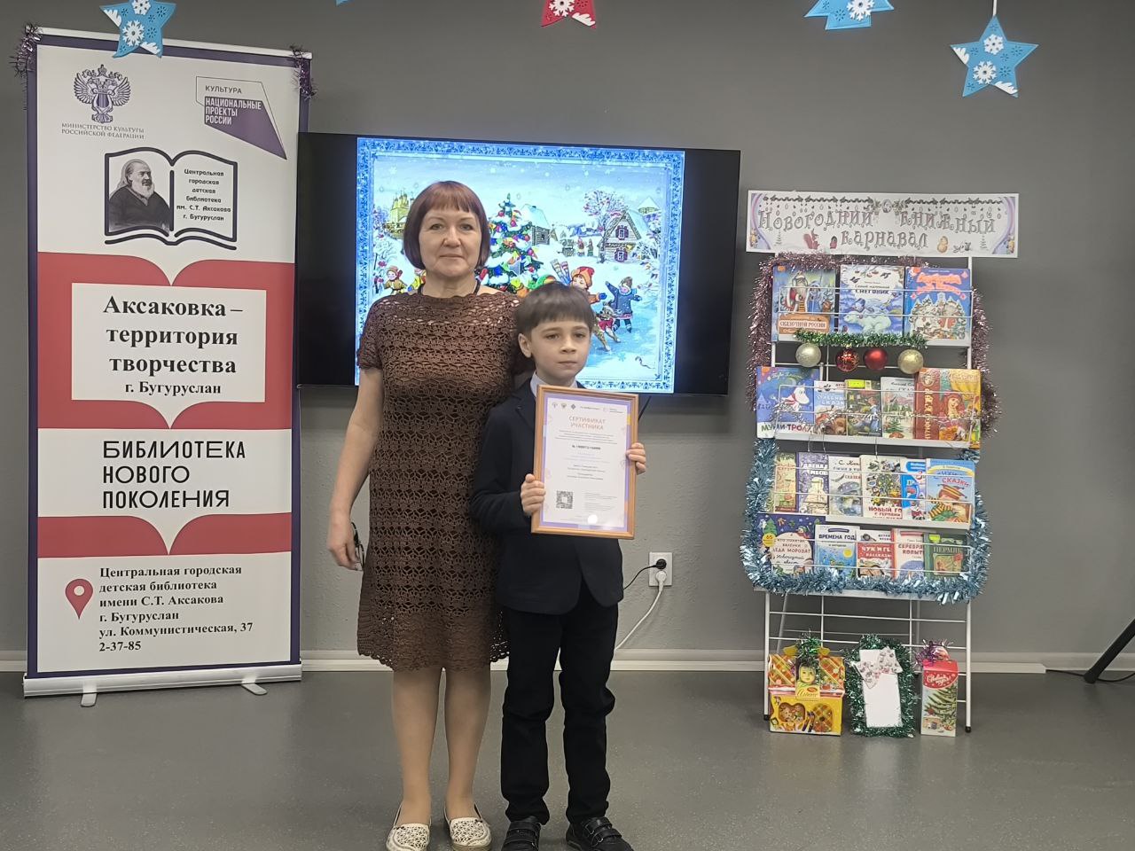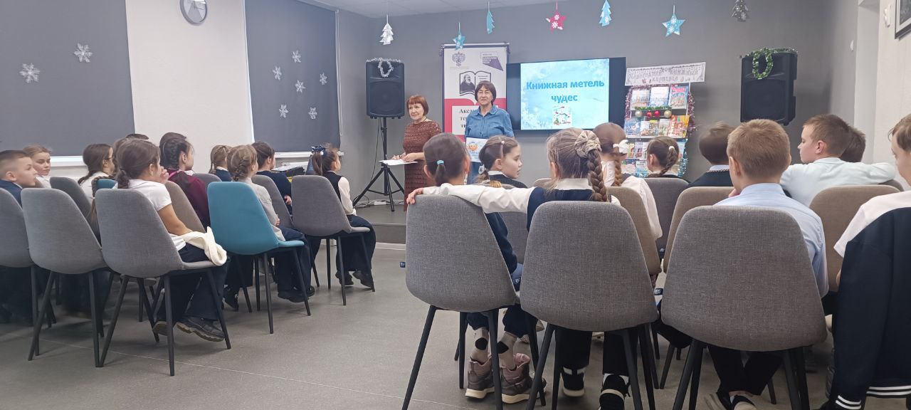 25 декабря в ЦГДБ имени С. Т. Аксакова царила настоящая праздничная атмосфера. Учащиеся 3 «Б» класса Гимназии №1 приняли участие в захватывающем библиоквизе «Книжная метель чудес». Это было не просто соревнование, а настоящее погружение в мир новог