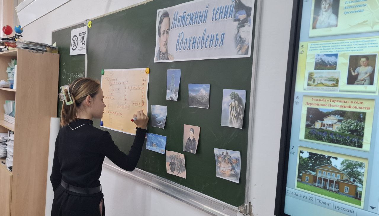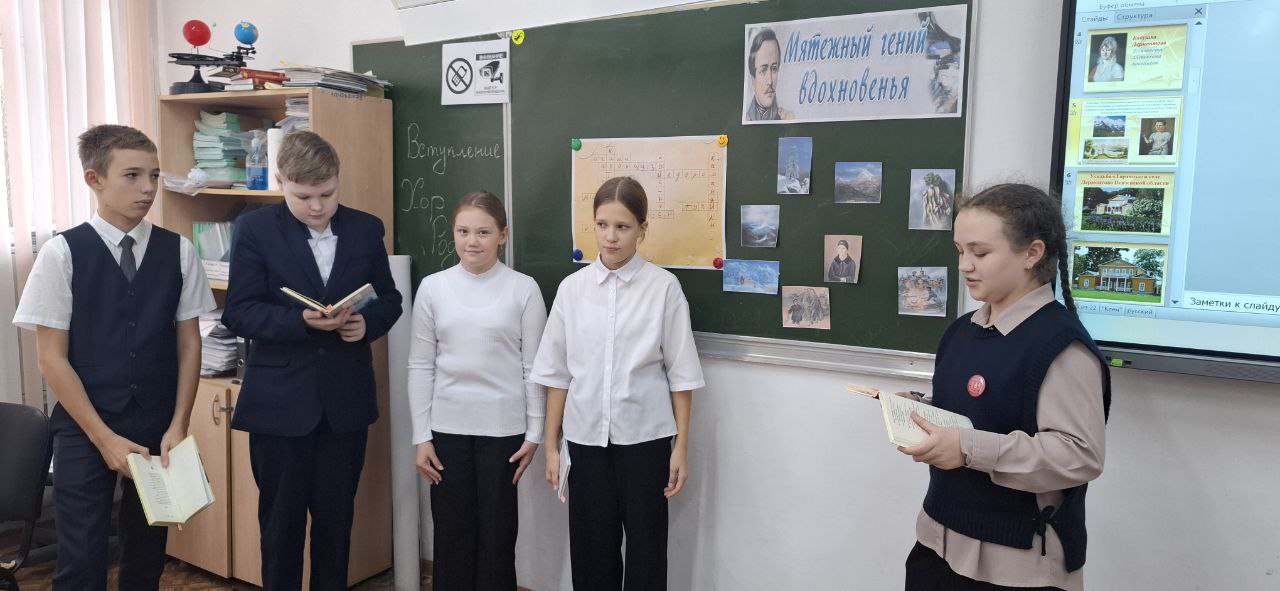 В ходе мероприятия школьники разгадывали кроссворд, отвечали на вопросы викторины, читали стихотворения Михаила Юрьевича: «Горные вершины», «Парус», «Бородино», «Утес» и «На севере диком».